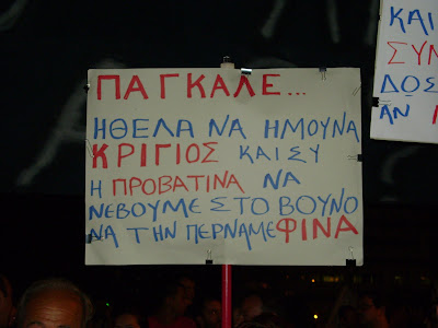 Και η αγανάκτηση συνεχίζεται… Από ΘΕΣΣΑΛΟΣ - 9 Ιουνίου 2011 0 109 ΔΕΙΤΕ ΠΕΡΙΣΣΟΤΕΡΕΣ ΦΩΤΟΓΡΑΦΙΕΣ ΑΠΟ ΤΟ ΑΓΑΝΑΚΤΙΣΜΕΝΟ ΣΥΝΤΑΓΜΑ ΕΔΩ: http://saktsak.blogspot.com/2011/06/blog-post_566.html