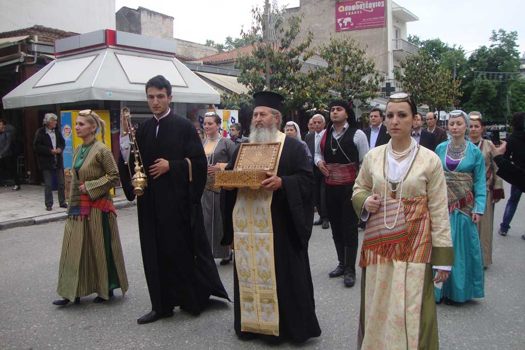 Υποδέχθηκαν τα Τρίκαλα, πριν από λίγη ώρα, την Ιερή και Θαυματουργής εικόνα του Αγίου Γεωργίου Περιστερεώτα, καθώς και λείψανα του Αγίου που φυλάσσονταν στην ομώνυμη Μονή στο Πυργί της Γαλίαινας του Πόντου και οι πρόσφυγες έφεραν στην Ελλάδα.Σε συνεργασία με την Ιερά Μητρόπολη Τρίκκης και Σταγών, το Σωματείο «Άγιος Γεώργιος Περιστερεώτα» και την Εύξεινο Λέσχη Ποντίων και Μικρασιατών Ν. Τρικάλων, τα λείψανα και η θαυματουργή εικόνα του Αγίου Γεωργίου, βρέθηκαν στην κεντρική πλατεία των Τρικάλων και από εκεί με την συνοδεία της Δημοτικής Φιλαρμονικής και πιστών, κατευθύνθηκε η πομπή στον Ιερό Μητροπολιτικό Ναό του Αγίου Νικολάου όπου ξεκίνησε Εσπερινός και Αρτοκλασία.