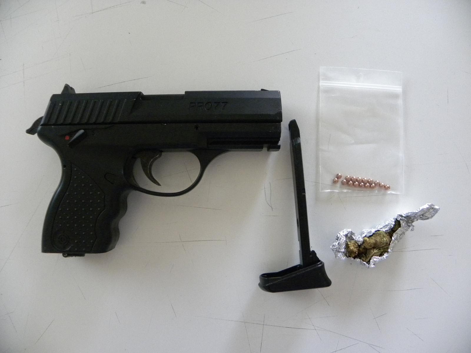 γραμμαρίων, ενώ ακόμη κατείχε ένα (1) πιστόλι αερίου και γεμιστήρα με δεκαέξι