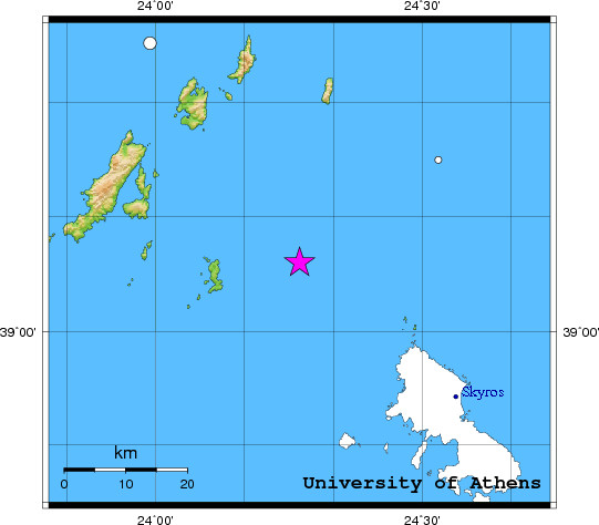 ΜΙΚΡΟΣΕΙΣΜΟΣ ΣΤΗΝ ΠΕΡΙΟΧΗ ΤΗΣ ΣΚΟΠΕΛΟΥ ΠΡΙΝ ΛΙΓΟ Από ΘΕΣΣΑΛΟΣ - 10 Απριλίου 2011 0 113 Origin Time Sunday, 10 April 2011, 21:09:12 UTC Magnitude M 2.7 Latitude 39.1°N Longitude 24.27°E Depth 10 km Region Aegean Sea Distances 33 km NW of Skyros 68 km E of Skiathos 132 km NNE of Athina # of Arrivals 9 Location Type Automatic http://skopelos-news.blogspot.com/