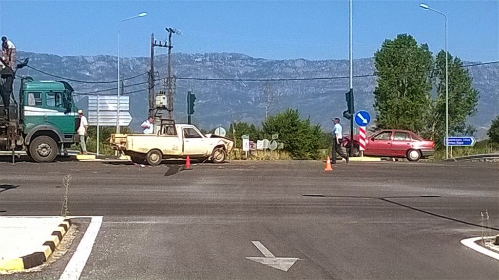 Ι.Χ επιβατικό αυτοκίνητο συγκρούστηκε με Ι.Χ αγροτικό φορτηγάκι, με το πρώτο όχημα να καταλήγει μετά τη σύγκρουση σε κολώνα