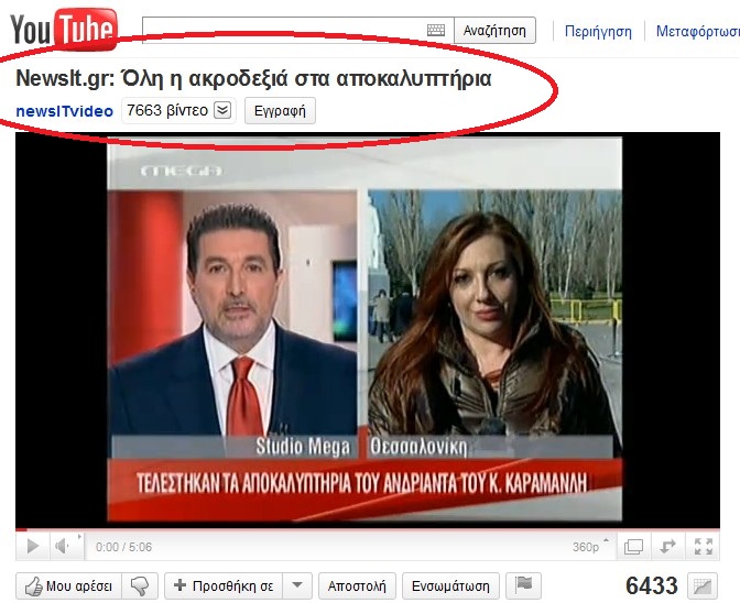 Ναι, ναι καλά διαβάσατε αυτός είναι ο τίτλος που έχει το Video των αποκαλυπτηρίων του ανδριάντα του Κωνσταντίνου Καραμανλή!!!!! (http://www.youtube.com/watch?v=BZqH9k6d-wU)