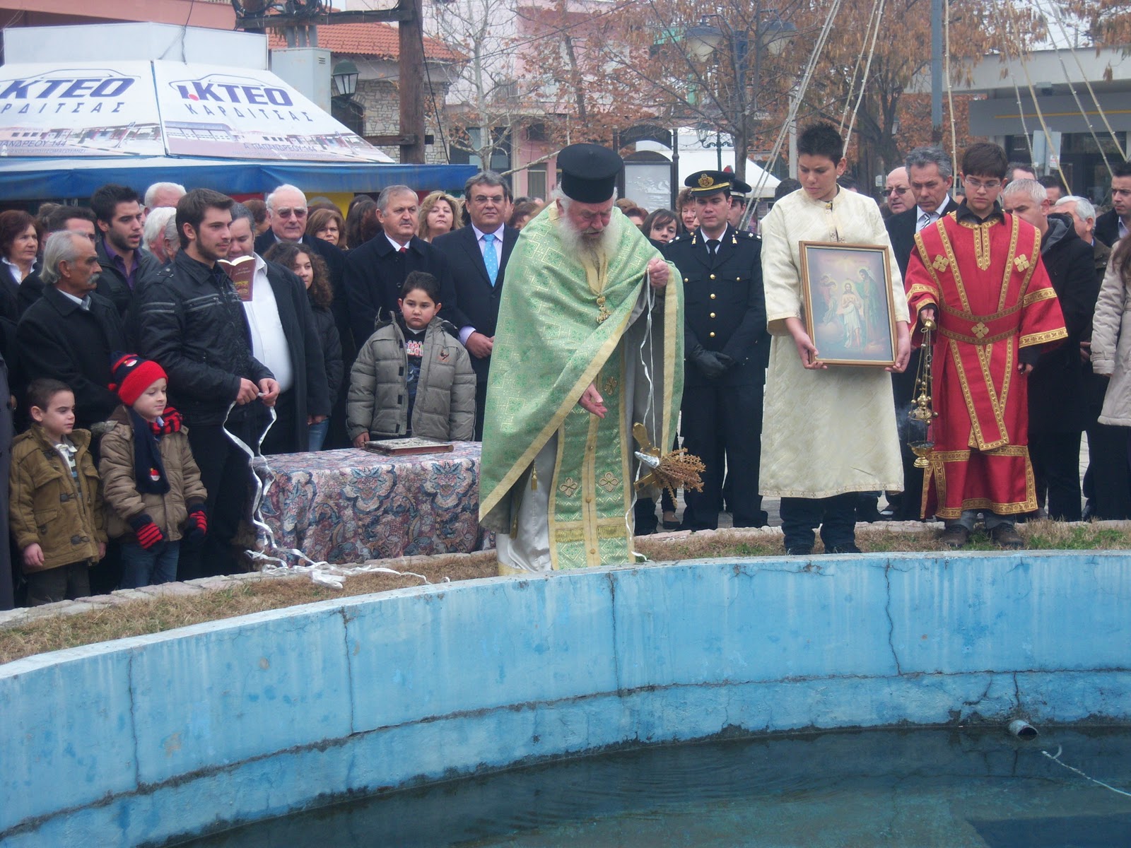 Με μεγάλη λαμπρότητα πραγματοποιήθηκε την Πέμπτη η τελετή αγιασμού των υδάτων στον Παλαμά, με την παρουσία των τοπικών Αρχών: Του νέου δημάρχου κ. Πατσιαλή, πρώην δημάρχων, αντιδημάρχων, δημοτικών και τοπικών συμβούλων, των διοικητών του Αστυνομικού Τμήματος και της Πυροσβεστικής, εκπροσώπων φορέων και πλήθους κόσμου.