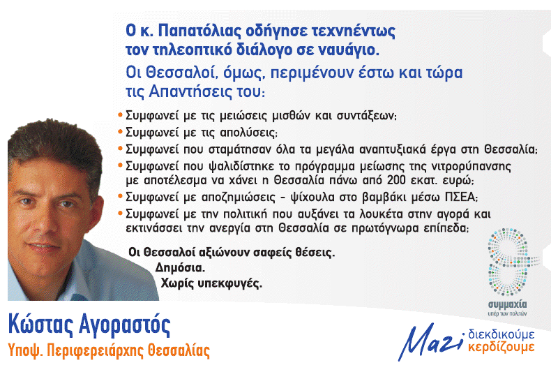 Oι θεσσαλοί περιμένουν ακόμα τις απαντήσεις του κ. Παπατόλια…
