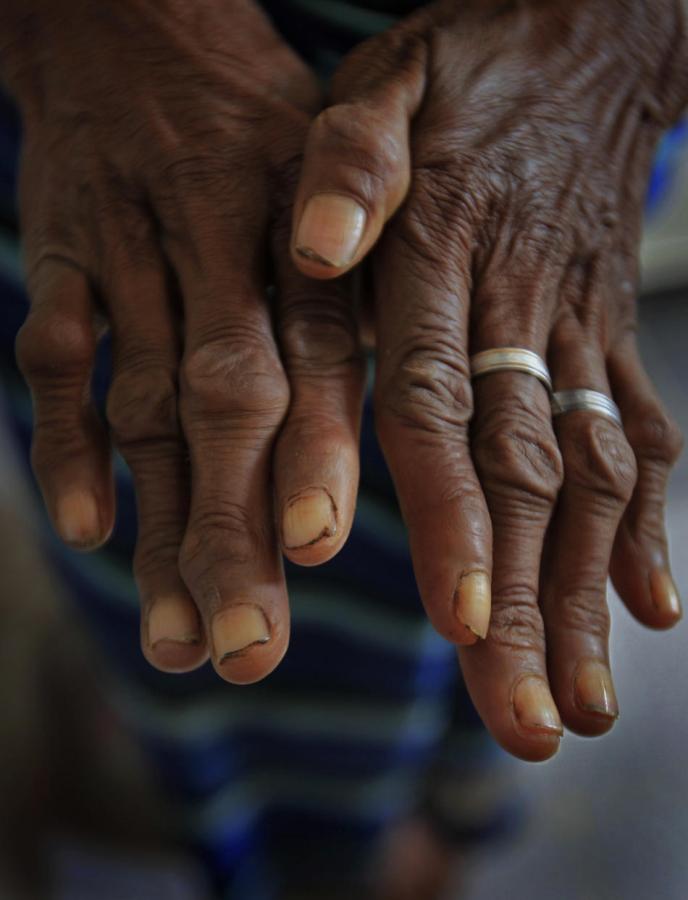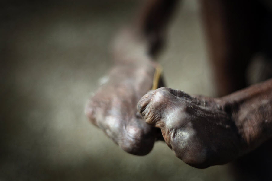 Συνέπειες της λέπρας – αλλοιώσεις στα χέρια 63-χρονου κάτοικου της Ινδονησίας Kirobina.
