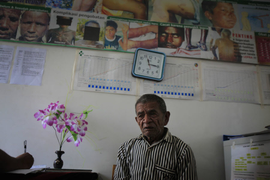 Ο 66χρονος Mario Cau περιμένει στο γραφείο του γιατρού γιά εξέταση της λέπρας και πόσο έχει εξαπλωθεί.