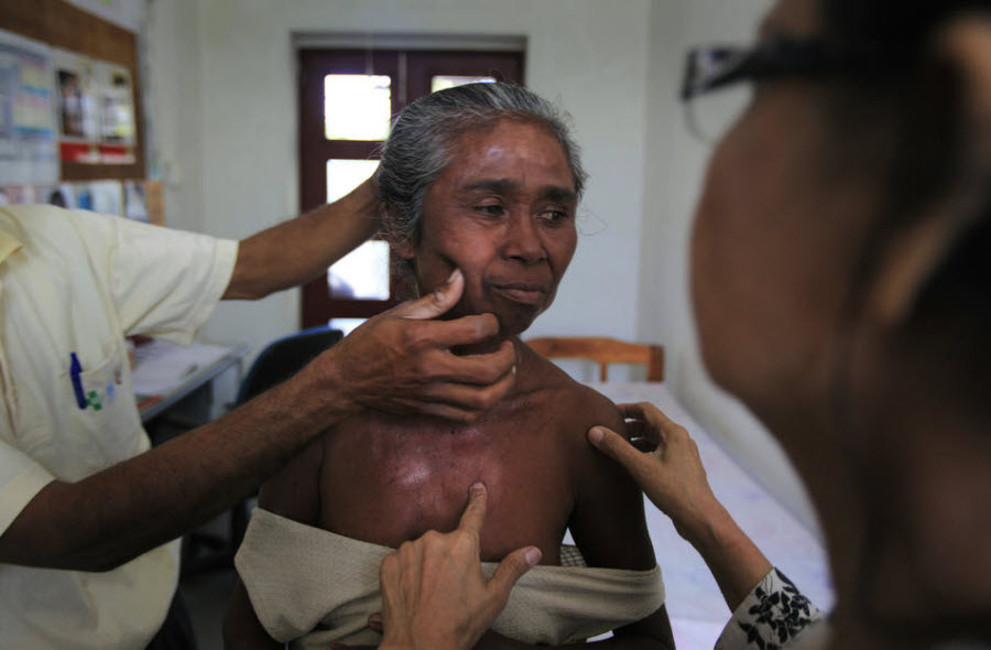 Ο γιατρός εξετάζει μια γυναίκα, 52χρονών, την Isabelle Afdan, η οποία είναι φορέας της λέπρας.