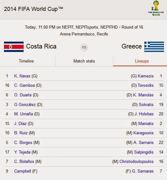 Oι συνθέσεις των δύο ομάδων… Κόστα Ρίκα-Ελλάδα – Καλή επιτυχία στα παιδιά μας! Από ΘΕΣΣΑΛΟΣ - 29 Ιουνίου 2014 0 158
