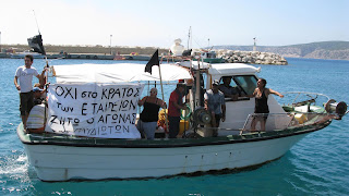 Αυτή τη στιγμή επιτροπή αγώνα έχει αποκλείσει το λιμάνι με βάρκες και καϊκια, περιμένοντας την αντίδραση της κυβέρνησης.