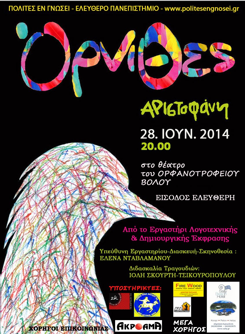 παρουσιάζει τη μουσικοχορευτική θεατρική παράσταση «Όρνιθες» του Αριστοφάνη.