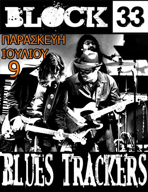 Tην Παρασκευή 9 Ιουλίου το Block 33 υποδέχεται στη σκηνή του τους Blues Trackers, στα πλαίσια του Goal33 festival. Μετά από δύο μοναδίκες εμφανίσεις πλάι στον γίγαντα των blues, Louisiana Red, και μια ακόμη στο πανευρωπαικό Super Rally της Harley Davidson μπροστά σε δυο χιλιάδες Ευρωπαίους, οι λαρισαίοι Blues Trackers ταξιδεύουν στη Θεσσαλονίκη έχωντας στις αποσκευές τους, όπως πάντα, άφθονη ενέργεια και καινούριο υλικό. Μοναδικές διασκευές από μια μοναδική μπάντα με τον δικο της ήχο, παιγμένες με πολύ “ρεύμα” και groovy διάθεση. Η κιθάρα του Muddy Waters και του B.B.King πλάι στoν ήχο του James Brown και του Stevie Wonder.