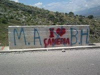 Πριν από δύο μήνες περίπου όλοι οι τοίχοι σε αυτό το τμήμα είχαν κοκκινίσει από εθνικιστικά αλβανικά συνθήματα. Αυτό που επαναλαμβάνετε ποιο πολύ είναι το “I Love Camerine”