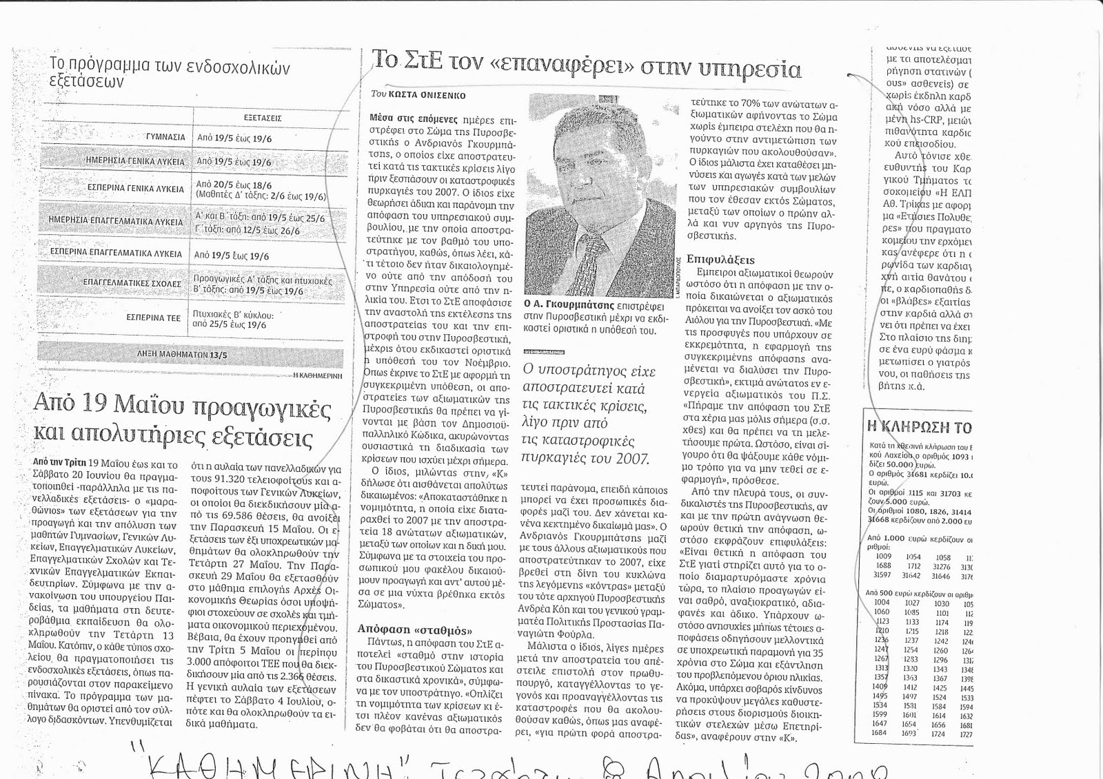 Τον Οκτώμβριο του 2009 ο Στρατηγός στέλνει στον Υπουργό Προστασίας του Πολίτη κ. Μ. Χρυσοχοϊδη και πάλι επιστολή και το επαναλαμβάνει το Φλεφάρη του 2010, ο οποίος μέχρι και σήμερα δεν του απάντησε… και ο Στρατηγός στο τέλος του Φλεβάρη καταγγέλει τον Υπουργό στον Πρωθυπουργό με έγγραφο.