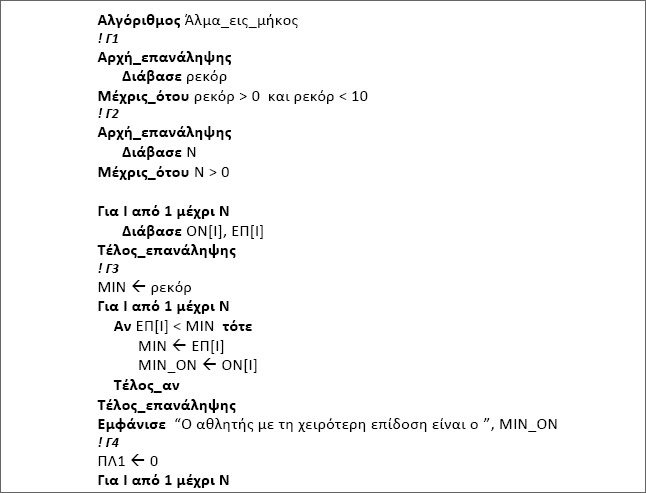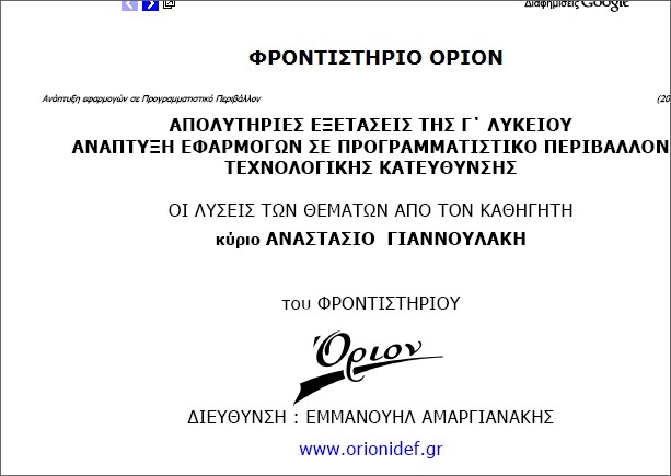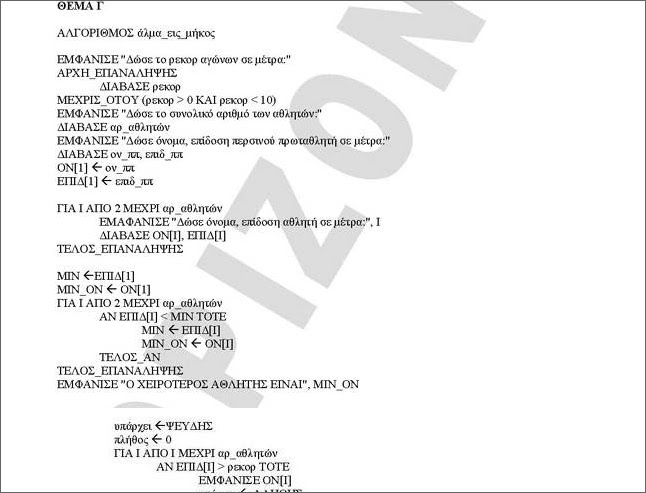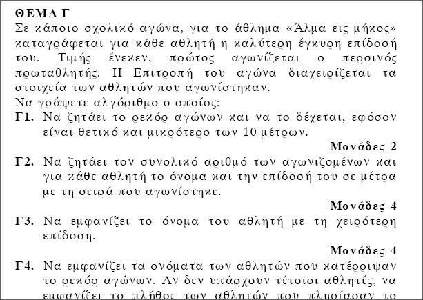 Το τρίτο θέμα ζητούσε τη δημιουργία αλγορίθμου που ως γνωστό δεν απαιτεί τη δήλωση μεταβλητών και δομών στην αρχή.