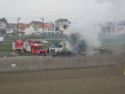 Χθες στις 11:40, στην επέκταση του Καπνικού σταθμού στην Κατερίνη φορτηγό έπιασε φωτιά όταν ο οδηγός του έκανε ανατροπή για την απόρριψη αμμοχάλικου και η καρότσα του ακούμπησε σε καλώδιο της ΔΕΗ.Ο οδηγός απομακρύνθηκε γρήγορα,ενώ ακολούθησε ισχυρή έκρηξη, φωτιά και πρόσκαιρη διακοπή ρεύματος σε διάφορες περιοχές της πόλης.Η Πυροσβεστική υπηρεσία έφτασε γρήγορα στο σημείο με δύο οχήματα και έθεσε γρήγορα τη φωτιά υπό έλεγχο πριν αυτή επεκταθεί.Οι εικόνες που ακολουθούν δείχνουν το φλεγόμενο όχημα ενώ είναι χαρακτηριστική η εικόνα του οχήματος να ακουμπά τα καλώδια.
