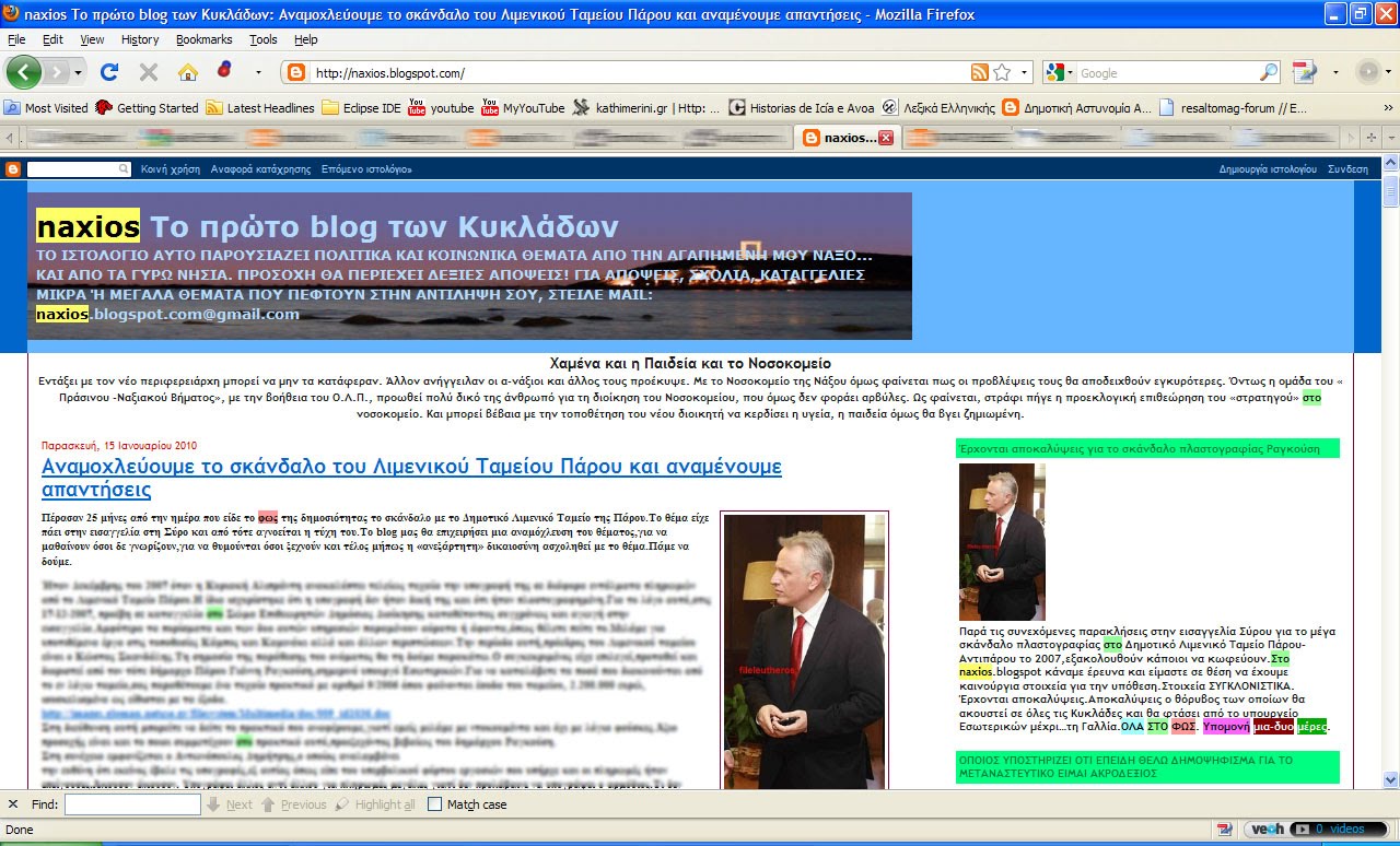 Από την ανάγνωση των κειμένων του blog, που αφορούν το πρόσωπο του κ. Ραγκούση, διακρίνουμε την προσπάθεια του blogger να τεκμηριώσει τους ισχυρισμούς του, παρουσιάζοντας κάποια στοιχεία (βλ. ανάρτηση με τίτλο «Αναμοχλεύουμε το σκάνδαλο του Λιμενικού Ταμείου Πάρου και αναμένουμε απαντήσεις», Παρ. 15 Ιανουαρίου 2010 (βλ. εικόνα 2) [πότε πέρασαν 15 ημέρες; τέσσερις ημέρες πριν(!)]). Αν τα στοιχεία είναι αληθή ή όχι, δεν το γνωρίζουμε. Ούτε αν ο αρθρογράφος υποκινήθηκε από κομματικούς αντιπάλους του κ. Ραγκούση. Ούτε αν το blog είναι κομματικοποιημένο.Βασιζόμενοι στη λογική, δεν πιστεύουμε την περίπτωση του εκβιασμού του υπουργού από έναν blogger. Η δυσφήμηση ή η συκοφαντική δυσφήμηση ελέγχεται, αλλά δεν δικαιολογεί την φίμωση ή την λογοκρισία που είναι γεγονός για το εν λόγο blog.
