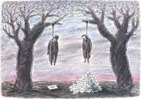 Είναι ανατριχιαστική η είδηση που μας δίνει το STOP-CARTEL. Υπερβαίνουν τους 200 οι μικρομεσαίοι επιχειρηματίες που από τις αρχές του 2009 έχουν προβεί στο απονενοημένο διάβημα της αυτοχειρίας. Δεν ξέρω αν τα θύματα της γρίππης υπερβούν τα 200, αλλά βλέπω ότι τα θύματα της κρίσης – πραγματικά, μετρημένα πτώματα που κρέμουνται από τα νταβάνια με τριχιές, καλώδια και γαμπριάτικες γραβάτες – δεν προξενούν και τόση ανησυχία στους μαέστρους της κακόφωνης ορχήστρας που αποκαλείται “ενημέρωση”. Ύστατη πράξη ελευθερίας αποκαλούσε ο Καμύ την αυτοκτονία. Αλίμονο!