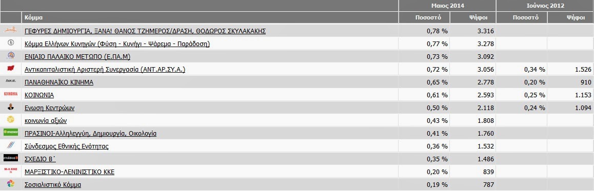 Με ποσοστό 26,39% και 112.042 ψήφους ο ΣΥΡΙΖΑ αναδείχθηκε το πρώτο κόμμα στη Θεσσαλία. Στη 2η θέση η ΝΔ με ποσοστό 24,02% και 101.963 ψήφους ενώ στην 3η θέση αναδείχθηκε η Χρυσή Αυγή με ποσοστό 9,19% και 39.025 ψήφους, παρουσιάζοντας αύξηση της τάξης του 3% σε σχέση με τις εθνικές εκλογές του 2012. Στην τελευταία θέση αναδείχθηκε το μειονοτικό κόμμα Ισότητας Ειρήνης και Φιλίας που πήρε μόλις 7 ψήφους.