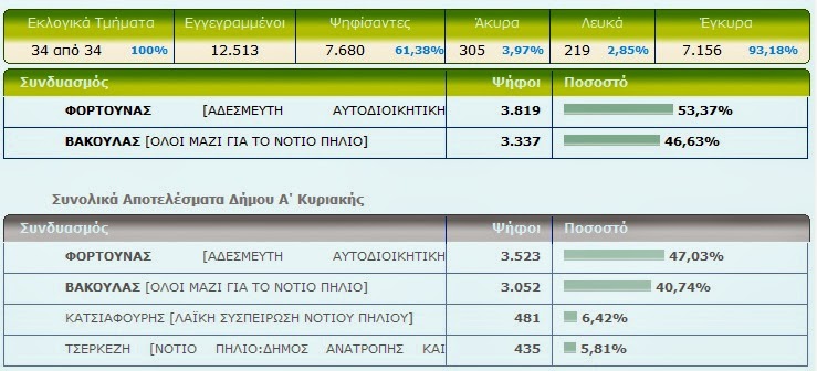 Δήμαρχος Νοτίου Πηλίου ο Νίκος Φορτούνας- Δείτε τα τελικά αποτελέσματα Από ΘΕΣΣΑΛΟΣ - 26 Μαΐου 2014 0 154 Με καταμετρημένα τα 34 από τα 34 εκλογικά τμήματα του Δήμου Νοτίου Πηλίου ο Νίκος Φορτούνας είναι ο Δήμαρχος Νοτίου Πηλίου με ποσοστό 53,37% Δείτε τα τελικά αποτελέσματα