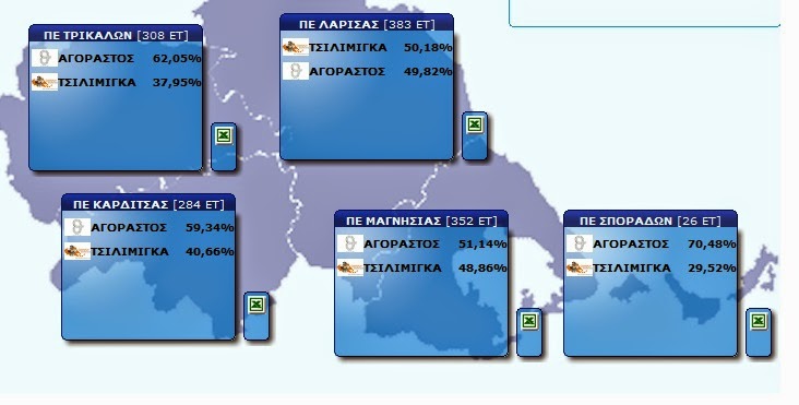 Αποτελέσματα μέχρι στιγμής σε 1353 από 1631 εκλογικά τμήματα στην Περιφέρεια Θεσσαλίας Από ΘΕΣΣΑΛΟΣ - 25 Μαΐου 2014 0 88