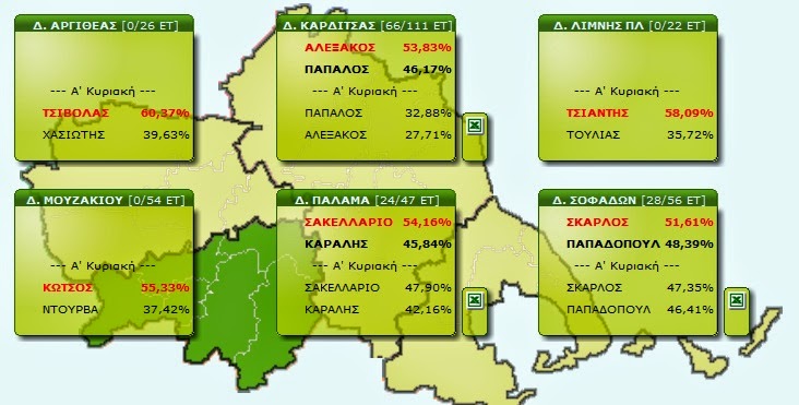 Επίσημα μέχρι στιγμής αποτελέσματα στους Δήμους του Νομού Καρδίτσας Από ΘΕΣΣΑΛΟΣ - 25 Μαΐου 2014 0 113 Κάνετε κλικ στην εικόνα για να δείτε τα αποτελέσματα