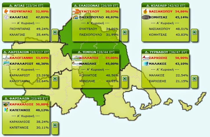 Επίσημα μέχρι στιγμής αποτελέσματα στους Δήμους του Νομού Λάρισας