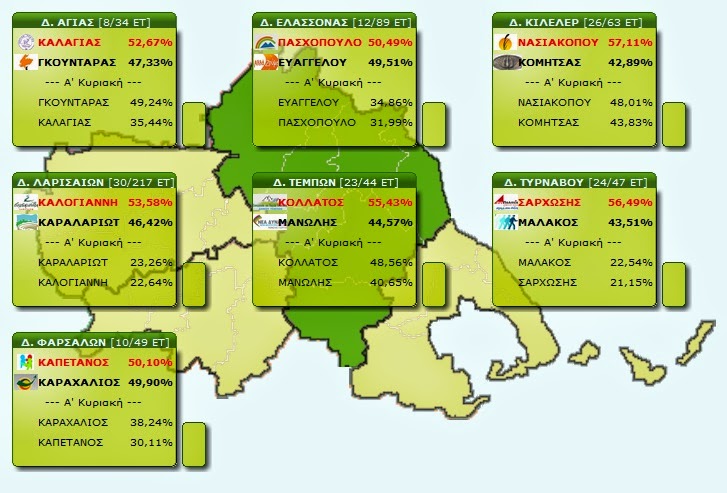 Επίσημα μέχρι στιγμής αποτελέσματα στους Δήμους του Ν. Λάρισας