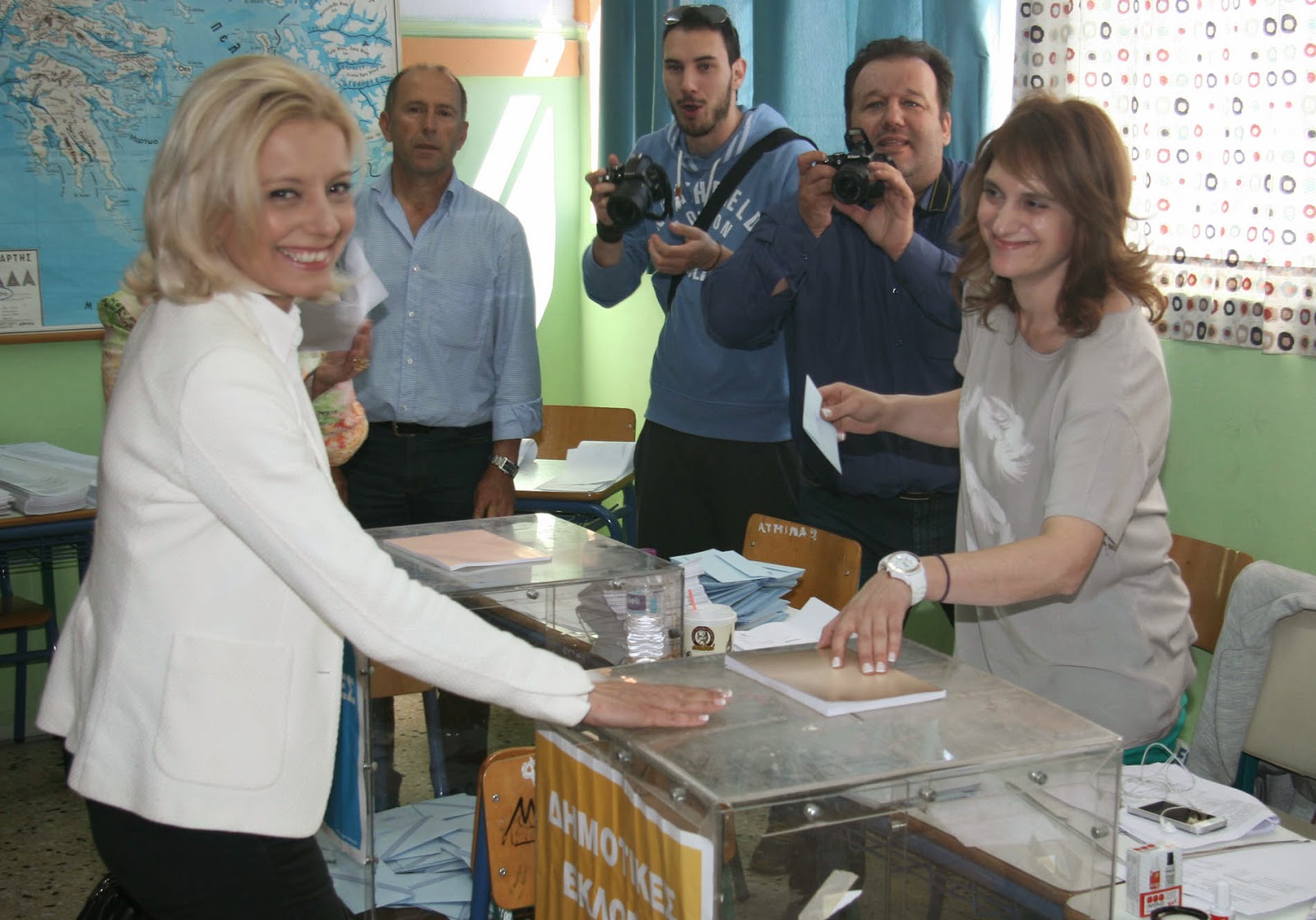 λίγο πριν ασκήσει το εκλογικό της δικαίωμα στο 278ο εκλογικό τμήμα.