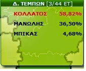 Aποτελέσματα 3 από 44 εκλογικά τμήματα στο Δήμο ΤΕΜΠΩΝ