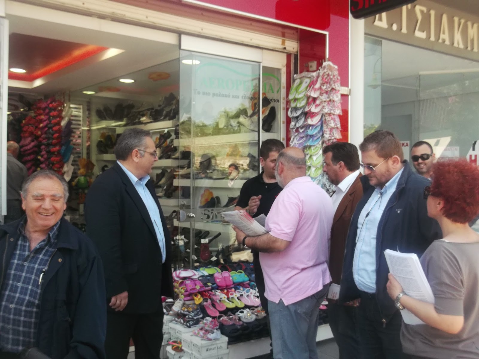 Το πρωί του Σαββάτου  10/5, κλιμάκιο της «Λαϊκής Συσπείρωσης» με επικεφαλής τον Γιώργο Λαμπρούλη, υποψήφιο δήμαρχο Λάρισας, περιόδευσε σε καταστήματα