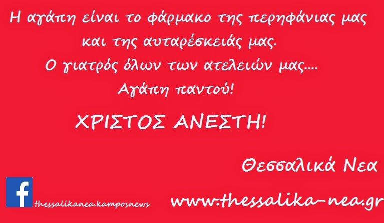 ΘΕΣΣΑΛΙΚΑ ΝΕΑ: Χριστός Ανέστη! – Χρόνια πολλά σ’όλους τους Θεσσαλούς… Από ΘΕΣΣΑΛΟΣ - 20 Απριλίου 2014 0 146