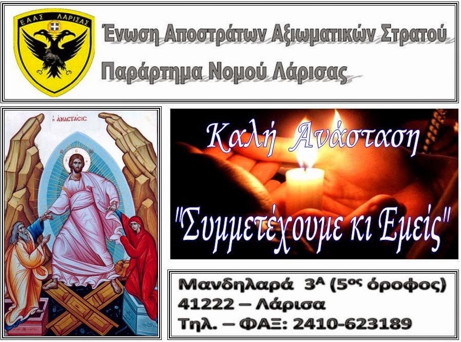 Η Ένωση Αποστράτων Αξ/κων Στρατού ν. Λάρισας, στο πνεύμα των Άγιων Ημερών που
