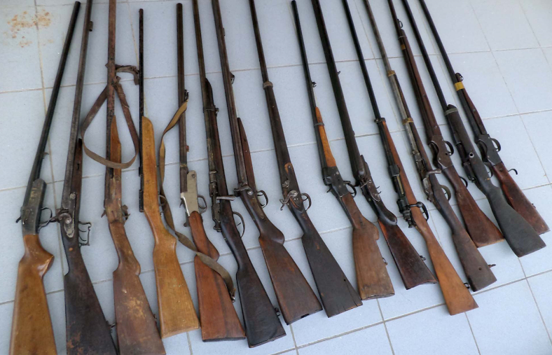 δίκαννα, δύο (2) καραμπίνες και ένα (1) φλόμπερ.