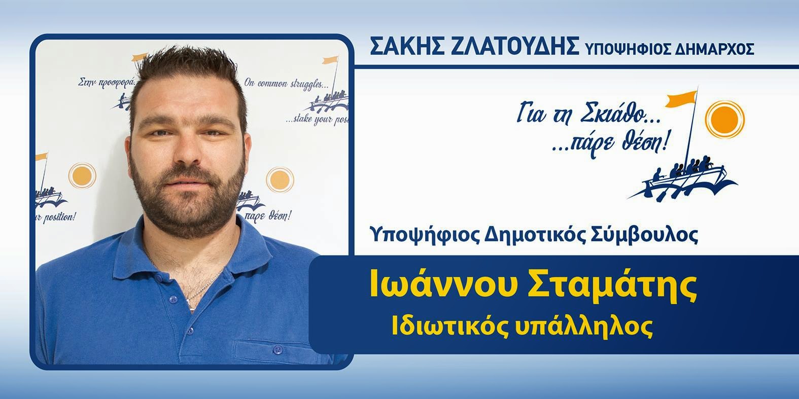 ΣΚΙΑΘΟΣ: ΥΠΟΨΗΦΙΟΙ ΤΟΥ ΣΥΝΔΥΑΣΜΟΥ «Για τη Σκιάθο Πάρε θέση!» Από ΘΕΣΣΑΛΟΣ - 28 Μαρτίου 2014 0 205 ΥΠΟΨΗΦΙΟΙ ΤΟΥ ΣΥΝΔΥΑΣΜΟΥ «Για τη Σκιάθο Πάρε θέση!» Tους πρώτους υποψήφιους Δημοτικούς Συμβούλους ανακοίνωσε η δημοτική κίνηση ΣΚΙΑΘΟΥ «Για τη Σκιάθο Πάρε θέση!» επικεφαλής της οποίας είναι ο κ. Σάκης Ζλατούδης. http://www.newsskiathos.gr/2014/03/blog-post_28.html