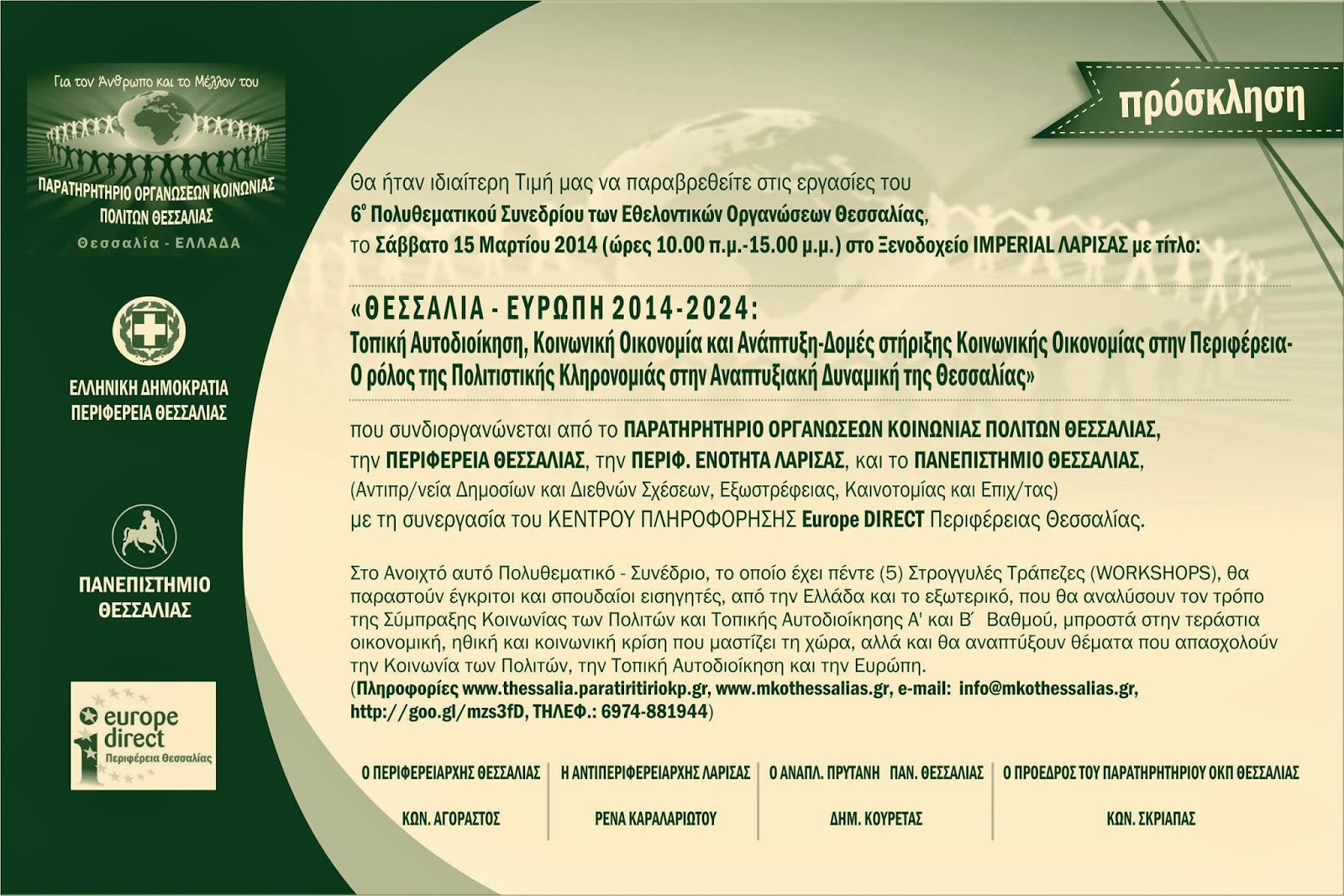 αυτομορφωση σε υψηλό επίπεδο: Συνέδριο από Περφέρεια Θεσσαλίας Πανεπιστήμιο Θεσσαλίας,