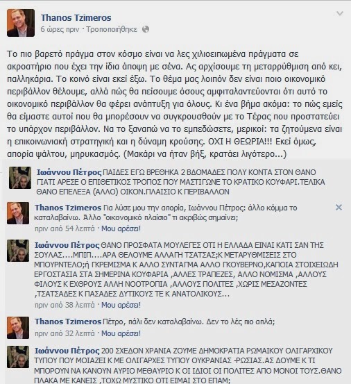 Θεσσαλική “κόντρα” στο facebook – Θάνος Τζήμερος Vs Πέτρος Ιωάννου Από ΘΕΣΣΑΛΟΣ - 22 Φεβρουαρίου 2014 0 124
