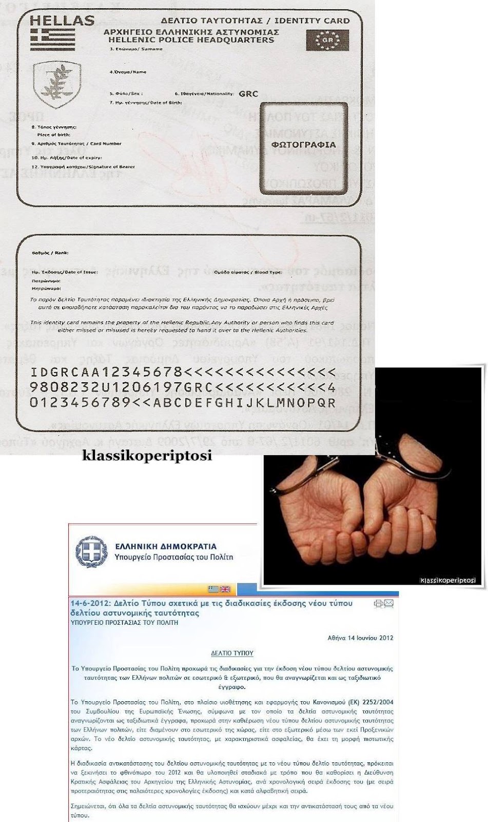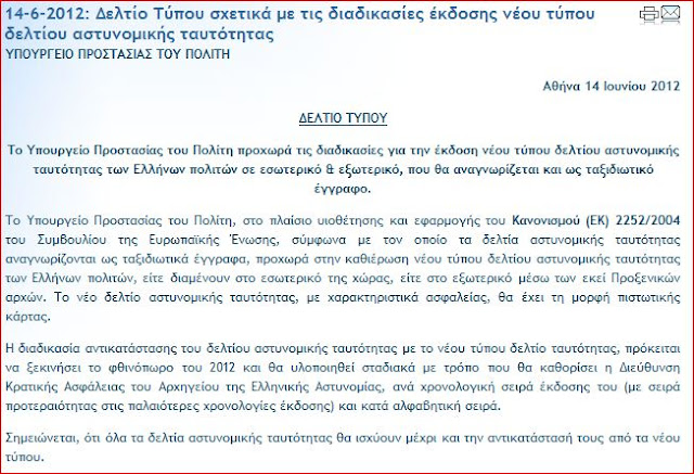 ΣΗΜΕΡΑ 14 ΙΟΥΝΙΟΥ 2012 ΤΟ ΥΠΗΡΕΣΙΑΚΟ ΥΠΟΥΡΓΕΙΟ ΠΡΟΣΤΑΣΙΑΣ ΤΟΥ ΠΟΛΙΤΗ ΑΝΑΚΟΙΝΩΣΕ ΤΗΝ ΑΝΤΙΚΑΤΑΣΤΑΣΗ ΤΗΣ ΤΑΥΤΟΤΗΤΑΣ ΜΑΣ ΜΕ ΝΕΑ (ΠΡΟΦΑΝΩΣ ΜΕ ΤΗΝ “ΚΑΡΤΑ ΤΟΥ ΠΟΛΙΤΗ”)