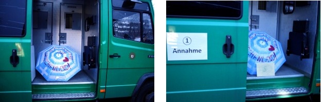 Ευτυχώς, εκείνη την ώρα υπήρχαν αξιωματούχοι της γερμανικής αστυνομίας, οι οποίοι έσπευσαν αμέσως προς την κυρία Ντόνερ και της κατέσχεσαν την επικίνδυνη ομπρέλα .Η κ.Ντονέρ αιφνιδιάστηκε από την κίνηση των αστυνομικών, οι οποίοι την ενημέρωσαν πως πρέπει να απολογηθεί ενώπιον του Γερμανικού δικαστηρίου.