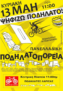 Την Κυριακή 13 Μαΐου όλη η Ελλάδα ανεβαίνει στο ποδήλατο διεκδικώντας την αναγνώριση του ποδηλάτου από την πολιτεία και τους κατά τόπους Δήμους ως ισότιμο μέσο μετακίνησης.