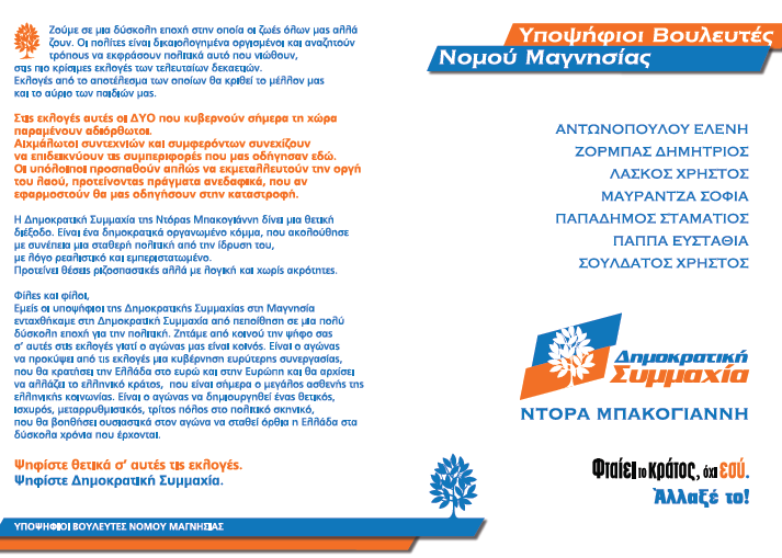 Υποψήφιοι βουλευτές Δημοκρατικής Συμμαχίας ν.Μαγνησίας