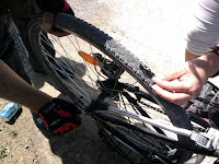 …κι ένα τρύπημα ελαστικού που επιδιορθώθηκε αμέσως, χάρη στη βοήθεια όλων των πιο έμπειρων ποδηλατών…